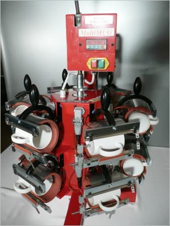 MultiMUG 12 wurde speziell für den Großseriendruck konzipiert und kann mit max. 12 Thermoelementen bestückt werden. (12 Druckmedien in einem Druckvorgang mit unterschiedlichen Druckmotiven). Minimum 6 Thermoelemente in der Bestückung.